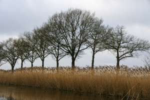 We lopen rustig langs de Noordervaart, aan de andere kant van het water ligt de drukke N275. Een mooie rietkraag zorgt ervoor dat we weinig verkeer zien.