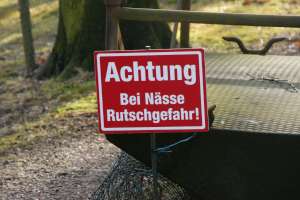 We lopen weer een stukje langs de Noordervaart. Het pad dat we eigenlijk in gedachte hadden bleek "eigen weg" te zijn en afgesloten met een stevig prikkeldraad. Dan zien we een paar bankjes met een soort bruggetje erachter. Het rode bord met Duitse tekst valt direct op. We zijn bij vormalige klooster Stokershorst.