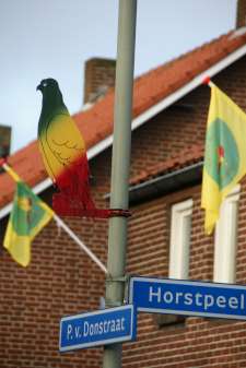We starten deze wandeling in het centrum van Heilbloem. Een klein en rustig dorp in het noorden van Limburg. Bij de kerk vinden we een parkeerplaats. Een snelle blik langs het centrum van dit dorp leert dat er geen horeca van betekenis is. Gelukkig hebben we een rugzak met etenswaren en drinken bij ons. We zien dat Heibloem eind januari al in de Carnavalsstemming is. overal hangen vlaggen. We komen ook langs het huis van Prins Carnaval. Niet te missen.